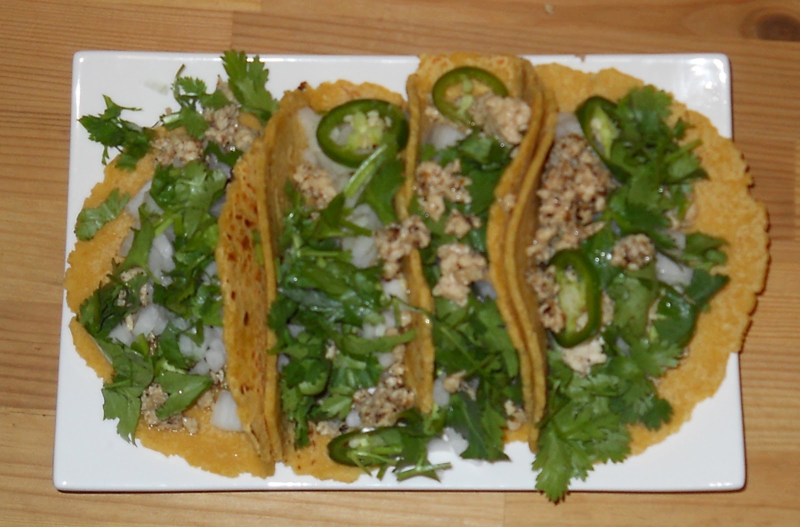 Long day workwise and had not eaten by 8pm, so I figured that I ought to. I was craving tacos, but there are not any great taquerias near my house, and I already had onions, cilantro and jalapenos: I bought a couple of bone-in breasts (I refuse to buy skinless chicken breasts) and ground them up whole on the coarse setting running the skin through as well (in a meat grinder that is at least fifty years old but works perfect). I toasted cumin seeds, peppercorns and dried cayenne peppers and then ground them up. I heated a bit of water in a sauté pan (I trick I learned making the Thai dish laab), added some salt and the ground chicken and then stirred in the spice mixture and cooked until it was done and the liquid was mostly gone. Heat your (corn) tortillas as normal and serve with cilantro, onions, and jalapenos. The jalapenos are perfect for muggy weather and the allergies associated therewith, and even grinding your own meat, this only takes minutes.